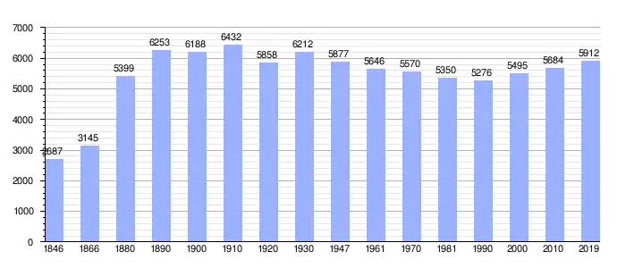 Todos los datos históricos relativos al actual municipio, el siguiente gráfico refleja su evolución demográfica, incluyendo municipios después de efectuada la fusión el 1 de enero de 1977.