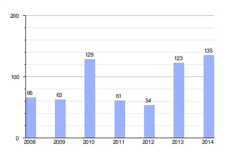 Gráfica de evolución de la deuda viva del ayuntamiento entre 2008 y 2014 |