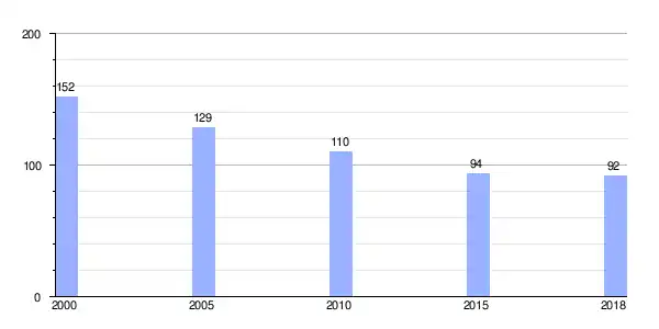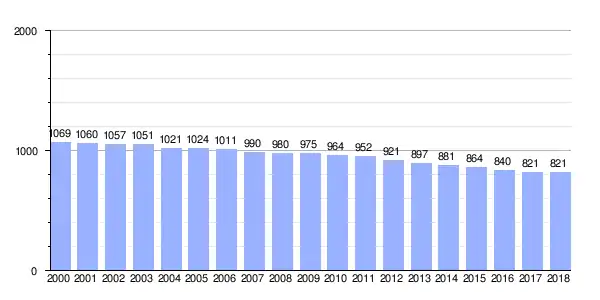 Gráfica de evolución demográfica de Lira (parroquia) entre 2000 y 2018 |