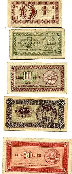 Tasa de cambio | 1 Lira triestina = 3 liras italianas (1945) | ||||