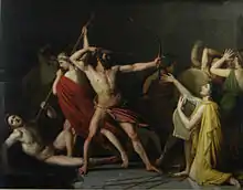En los inicios de la literatura griega destacan las dos obras monumentales de Homero, la Ilíada y la Odisea . [8] : 1–3 La figura de Homero está envuelta en misterio. Aunque las obras tal como están ahora se le atribuyen, es seguro que sus raíces se remontan mucho antes de su tiempo (ver Cuestión homérica ). [8] : 15 La Ilíada es una narración de un solo episodio que abarca el transcurso de un período de diez días desde casi el final de los diez años de la Guerra de Troya. Se centra en la persona de Aquiles, [9] quien encarnó el ideal heroico griego. [10] [8] : 3