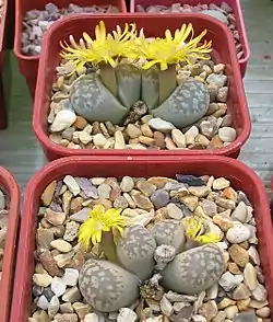 Lithops: nombre genérico que deriva de las palabras griegas: "lithos" (piedra) y "ops" (forma).