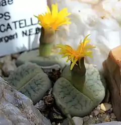 Lithops: nombre genérico que deriva de las palabras griegas: "lithos" (piedra) y "ops" (forma).