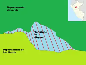 El Litigio de los Territorios Shawis fue una problemática que comenzó el 2011 con las demarcaciones que se realizaban durante el saliente gobierno de Alan García, este conflicto social se mantuvo prácticamente pacífico hasta el año 2015; año en que salieron los resultados del recorte territorial entre los departamentos peruanos de Loreto y San Martín ocasionando la negatividad por este último que actualmente se mantiene en disputa por 37 mil hectáreas con Loreto.[2] después de la controversia limítrofe entre Loreto y San Martín[3] donde casi todas las hectáreas pasaban a manos del Gobierno Regional de Loreto, provocando de esta forma que la autoridad máxima de San Martín Víctor Manuel Noriega se mostraba inconforme y provocará a protestas en Tarapoto y Moyobamba. Actualmente la región Loreto es la única región que firmó el acta de Acuerdos.