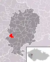 Se encuentra ubicada al norte de la región, en la cuenca hidrográfica del río Berounka —un afluente izquierdo del río Moldava que, a su vez, lo es del Elba—, y cerca de la frontera con la región de Bohemia Central.[1]