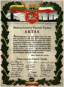 Los lituanos prusianos, o lietuvininkai (singular: Lietuvininkas, plural: Lietuvininkai)[1], son un subgrupo étnico dentro de los lituanos,[2] originalmente hablantes de lituano, que anteriormente habitaban un territorio en el noreste de Prusia Oriental llamado Lituania prusiana o Lituania Menor (en lituano, Prūsų Lietuva, Mažoji Lietuva, en alemán, Preußisch-Litauen, Kleinlitauen). Los lituanos prusianos contribuyeron en gran medida al desarrollo del lituano escrito, que durante mucho tiempo estuvo considerablemente más extendido y tuvo un uso más literario en Lituania Menor que en Lituania propiamente dicha.[3]