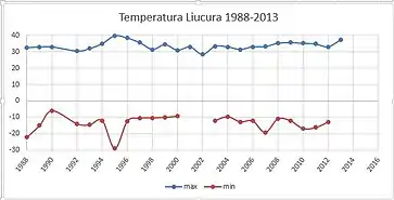 La zona de Lonquimay en general presenta condiciones climáticas extremas (mucho frío en invierno y elevadas temperaturas en verano). La estación meteorológica del lugar ha reportado mínimas de -29°C en el invierno de 1995 (año del terremoto blanco) y máximas cercas a 40°C en verano (ver figura adjunta).[9]