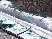 Su aplicación es para minerales de baja ley tanto para óxidos como sulfuros. Los ciclos de lixiviación son largos. Este sistema no requiere chancado, ya que el mineral es descargado tal cual viene de la mina sobre una pendiente o pila y luego se le implanta un sistema de riego.