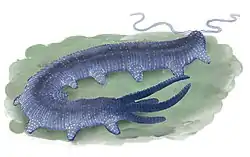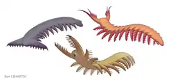 ![]() Reconstrucción de varios lobópodos. 1: Microdictyon sinicum, 2: Diania cactiformis, 3: Collinsovermis monstruosus, 4: Luolishania longicruris, 5: Onychodictyon ferox, 6: Hallucigenia sparsa, 7: Aysheaia pedunculata, 8: Antennacanthopodia gracilis, 9: Facivermis yunnanicus, 10: Paucipodia inermis, 11: Jianshanopodia decora, 12: Hallucigenia fortis | ||
