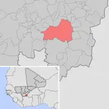 Se encuentra ubicada al suroeste del país, cerca del río Níger, al sureste de la capital nacional, Bamako, y cerca de la frontera con Burkina Faso y Costa de Marfil.
