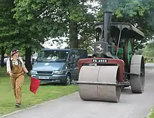 - Cada automóvil tenía que ser acompañado por un grupo de tres personas: un conductor, un fogonero y un hombre con una bandera de color rojo (de ahí el nombre de Ley de la Bandera Roja) que tenía que caminar 60 yardas (55 metros) por delante. El hombre con la bandera roja (o, alternativamente, con un farol) obligaba a los vehículos a mantener el ritmo del paso de hombre (que es precisamente 6 km/h) y tenía la tarea de alertar a los que fueran montados a caballo del paso del vehículo de motor.