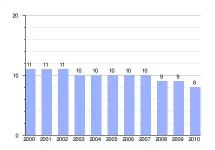 Población de derecho (2000-2010) según los censos de población del INE a 1 de enero de cada año.[3] |