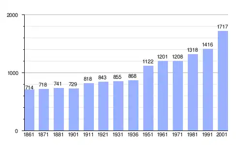 Gráfica de evolución demográfica de Lodrino entre 1861 y 2001 |