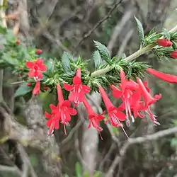 Loeselia mexicana es una planta herbácea a arbustiva de hasta 2 m de alto, de base leñosa, con tallos erectos ramificados desde la base. Las pequeñas hojas rígidas y ásperas al tacto, son densamente pubescentes, ovadas a lanceoladas y de margen aserrado. Las flores crecen de modo solitario o agrupado en las axilas de las hojas. La vistosa corola es roja —a veces amarillenta, rosada o blanca— con cinco lóbulos anchos. Los estilos sobrepasan la corola.[1]