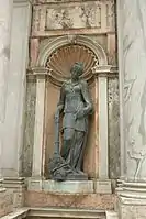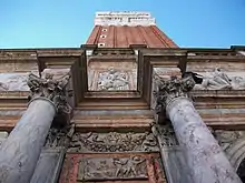 Giorgio Massari amplió el ático entre 1749 y 1750. Los relieves en mármol de los dos putti de las alas exteriores del alzado fueron tallados por Antonio Gai. [20]