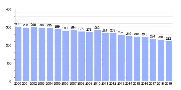 Gráfica de evolución demográfica de Loira entre 2000 y 2019 |