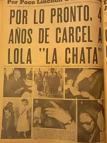 Lola la Chata ingresó siete veces a la prisión. La primera vez fue en Pachuca Hidalgo en 1934, la segunda y tercera vez en 1937, donde salió libre por falta de elementos, la cuarta vez en 1940 habiendo pagado una multa de 500 pesos que le impuso el Juez 6° de la 7° Corte Penal en el Distrito Federal, la quinta vez en 1945, la sexta vez en 1951; finalmente fue detenida en abril de 1957.[7] Su detención generó diversas declaraciones del procurador general de la República, anunciando el "fin del narcotráfico". En su defensa, esta negó participar en el tráfico de drogas, así como también proporcionar alguna lista de las personas involucradas en la distribución y comercio de los mismos, manifestó su deseo de permanecer en la cárcel para cumplir su condena, que estaba "en la vil calle", que "no podía contratar a un abogado particular para que la defendiera", así también confesó que era drogadicta.[8] Falleció en prisión.