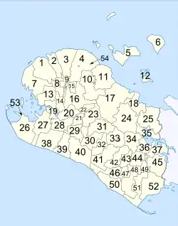 - Asociaciones municipales y vecinales: Eniro map with named municipalities