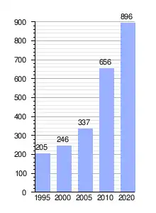 Gráfica de evolución demográfica de Loma Bonita entre 1995 y 2020 |
