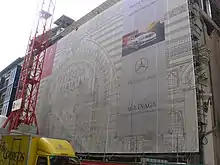 - andamios, durante el tiempo que dura la obra. En este caso, son muy demandadas las localizaciones en edificios céntricos y visibles que pueden conseguir un alto número de impactos publicitarios. Actualmente, las lonas de andamio alcanzan enormes dimensiones sin perder resolución haciéndose bien presentes en los cascos históricos de las ciudades.
