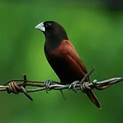 El capuchino castaño (Lonchura atricapilla)[2][3] es una especie de ave paseriforme de la familia Estrildidae nativa de la región indomalaya y la Wallacea. Anteriormente era considerada como una subespecie del capuchino tricolor, Lonchura malacca.