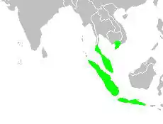 Se encuentra en la península malaya, el extremo sur de Indochina, Sumatra y Java e islas menores circundantes, distribuido por Indonesia, Malasia, Singapur, y el sur de Tailandia, Vietnam y Camboya. Suele encontrarse en los herbazales y humedales hasta los 500 msnm.[3] También frecuenta los arrozales.