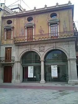 Se tienen noticias de que la fachada de este piso estuvo pintada con pinturas alegóricas de Oliet. El conjunto se corona con una cornisa clásica con ovas y un antepecho rematado por jarrones.