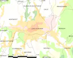 • Cantón | Chef-lieu de dos cantones: Cantón de Lons-le-Saunier-Nord, Cantón de Lons-le-Saunier-Sud[1] | |