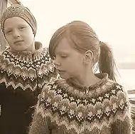 La lopapeysa es un estilo tradicional de jersey islandés, caracterizado por su diseño con un círculo decorativo ancho que rodea la abertura del cuello.