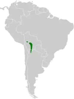 Se distribuye por los altiplanos andinos desde el oeste de Bolivia (desde el sur de La Paz), hasta el noroeste de Argentina (Jujuy y Salta).[4][1]