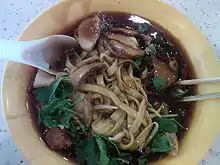 Este plato es consumido por los hoklo (hablantes de chino min nan) de Singapur y Malasia. El gravy espeso se hace con maicena, especias y huevo. Los ingredientes añadidos a los fideos suelen ser ngo hiang, pastelitos de pescado, dumplings redondos y planos de pescado o carne (normalmente pollo o cerdo), huevo pasado por agua y otros, según disponibilidad de mercado y presupuesto. También puede tomarse con guindilla. Las versiones tradicionales incluyen además trocitos de pescado frito encima, si bien pocos puestos sirven ya esta versión.