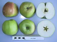 ![]() La variedad de manzana 'Lord Derby' con secciones cruzadas. | ||