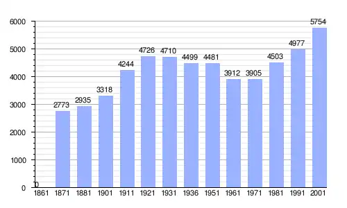 Gráfica de evolución demográfica de Loreggia entre 1861 y 2001 |