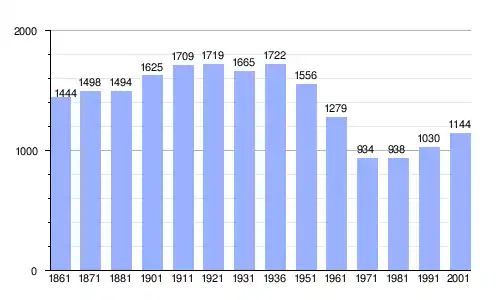 Gráfica de evolución demográfica de Lorenzana entre 1861 y 2001 |