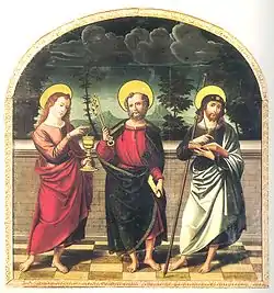 - El fresco con El Padre eterno, san Romano y san Roque de la Pinacoteca Municipal de Deruta.[42]