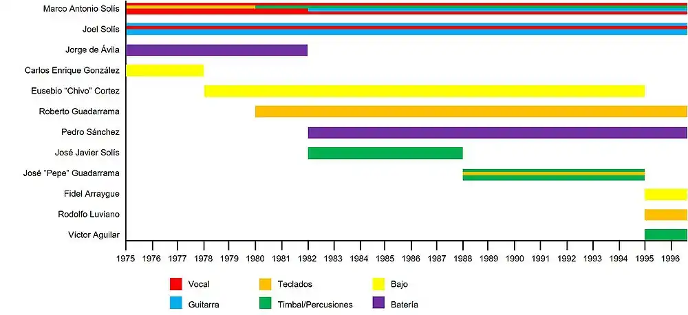 - Marco Antonio Solís (Fundador): Voz, Segunda Guitarra y Timbales