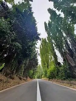 ![]() "El Callejón", principal camino del sector, a sus costados se aprecian Álamos. Fotografía Primaveral, Año 2020.