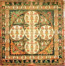 - Mandala de los Cinco Dhyani Buddhas - Pintura de Thangka de los Cinco Budas.