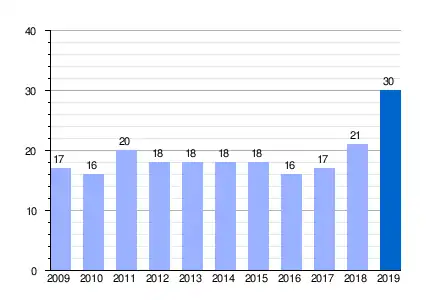Gráfica de evolución demográfica de Los Llanos entre 2009 y 2019 |