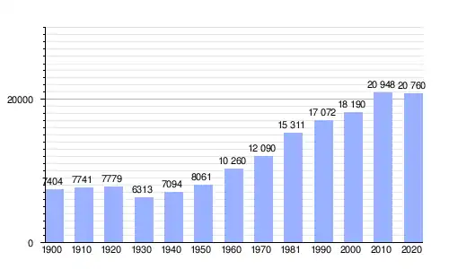 Gráfica de evolución demográfica de Los Llanos de Aridane entre 1900 y 2020 |