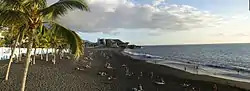 - Playa de Puerto Naos: Está situada en la mejor zona del poniente palmero, con buenas temperaturas todo el año, lo que le ha permitido obtener el galardón de Bandera Azul gracias a sus servicios y aguas cristalinas. Tiene un bulevar que bordea toda la playa natural de arena negra, donde se puede pasear o sentarte en algunos de los bar-terraza a contemplar del mar, la playa o una hermosa puesta de sol al atardecer.