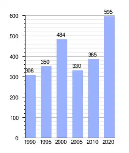 Gráfica de evolución demográfica de Los Migueles entre 1990 y 2020 |