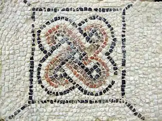 En las intervenciones arqueológicas efectuadas en este conjunto residencial destacan los restos de una fontana decorada con conchas (cardium edule), un hypocaustum perteneciente a una zona termal y una habitación con pavimento de mosaicos (opus tessellatum). Este mosaico, fechado en el siglo III d.C., estaba constituido por teselas blancas de aproximadamente de 1 cm. formando motivos geométricos compuestos por nudos salomónicos de teselas de color negro, anaranjadas, blancas y rojo vino, insertos en cuadrados entrelazados por líneas de teselas negras; y, los extremos, decoración de hojas de hiedra.