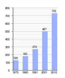 Gráfica de evolución demográfica de Los Molles[1] entre 1970 y 2010 |