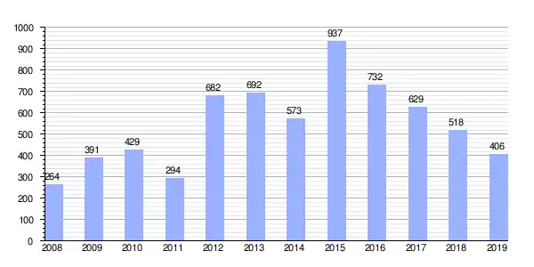 Gráfica de evolución de Deuda viva del Ayuntamiento de Molares (Los) entre 2008 y 2019 |