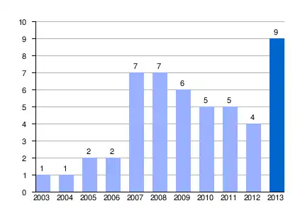 Gráfica de evolución demográfica de Los Oqueales entre 2003 y 2013 |