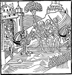 El juego de ajedrez era popular en Francia en la Edad Media, no es raro que los textos y los cantares lo evoquen ya que pone en juego el honor de ambos jugadores,[160] al tiempo que constituye una proyección del enfrentamiento militar en un tablero de ajedrez. En Los cuatro hijos de Aymón, la disputa en el ajedrez desemboca a continuación el conflicto, cuyo interés, para los hijos de Aymón, es también «poner al rey en jaque».[161] Este episodio parece haber tenido una clara importancia para el público y los autores de la Edad Media, aunque únicamente sea por su abundante iconografía. Alexander Neckam se refiere explícitamente a ello en su enciclopedia.[91]
