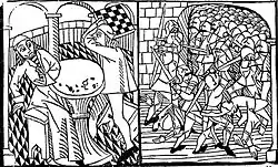 Las versiones en prosa popularizan el cantar de Los cuatro hijos de Aymón. Aparece una vulgata sin rima,[115][116] seguida a mediados del siglo XV por una versión en prosa que presenta el linaje de Renaut, incluyendo la Historia de Maugis de Aigremont.[117] La imprenta aceleró el fenómeno. Ya en el siglo XV, pequeños libros populares holandeses e incunables lioneses reeditaron y difundieron la narración,[99] de modo que en el siglo XVI se intercambiaron en gran número impresos en Francia y en versiones traducidas. Las adaptaciones incluyen versiones escandinavas, alemanas, españolas e italianas, y cuentos de caballería.[118] Una adaptación alemana apareció en 1535, seguida en 1604 por Ein schöne und lüstige Histori von den vier Heymonskindern en Colonia, una adaptación de la propia versión flamenca basada en la francesa.[119] Ludwig Tieck editó una versión de una fuente diferente.[120] Rabelais y Cervantes, entre otros, se refieren a los personajes de Los cuatro hijos de Aymón en sus respectivos escritos.[121] Las reescrituras juegan con el uso de un léxico medieval o, por el contrario, con una modernización del lenguaje.[91]
