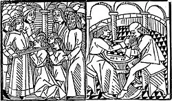 Renaud se va sin avisar, para trabajar como peón en la construcción de la catedral de Colonia, a cambio únicamente pide dinero para comer,[81] pero los otros albañiles consideran que este extraño peregrino les hace competencia desleal,[82] y deciden matarlo.[83]