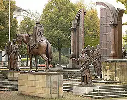 En las proximidades del Leinerschloss (Palacio del Leine), sede del Parlamento del estado federal de la Baja Sajonia se encuentra un gran monumento realizado en bronce por el escultor italiano Floriano Bodini (1933-2005). En Gotinga, el campus de la Universidad Jorge Augusto también recibe el nombre de Platz der Göttinger Sieben (lugar de los siete de Gotinga).